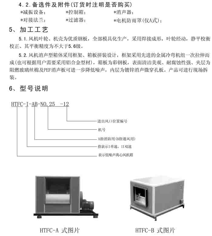 · 一、HTFC(DT)-I、II、V 系列低噪聲消防排煙(兩用)風機箱